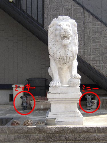 の両脇にに石造が増えていた。ミッキーとミニーだ。(画像でわかるかな?)
