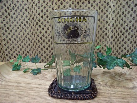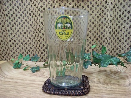 アジアのビールのロゴがプリントされたグラスです。