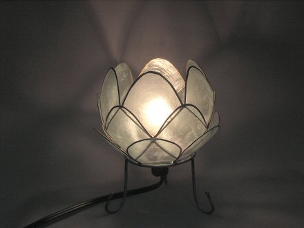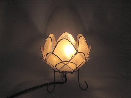 カピス貝を使った蓮の花の形のランプです。