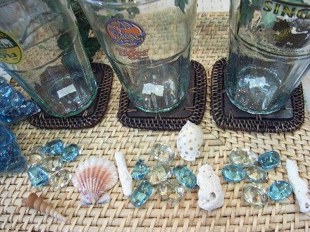 ガラス玉とシェルと珊瑚を散らしました。