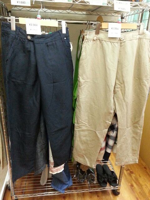 サイドが絞れるワイドパンツ。