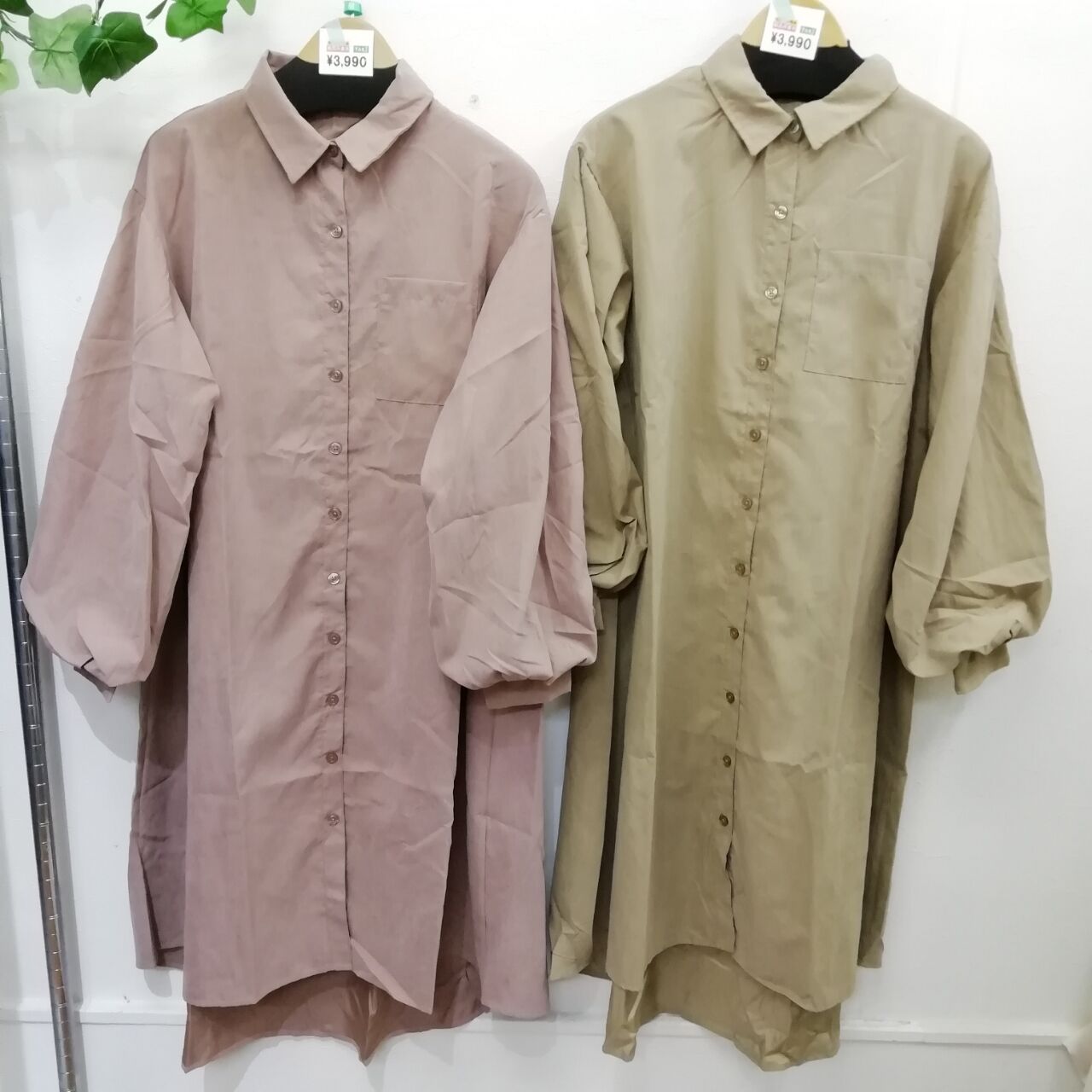 2、ボリューム袖シャツワンピ