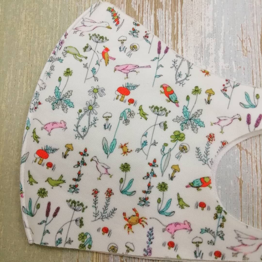 1、カエル、キノコ、花、鳥、カニとカワイイがギュッと詰まった柄です。