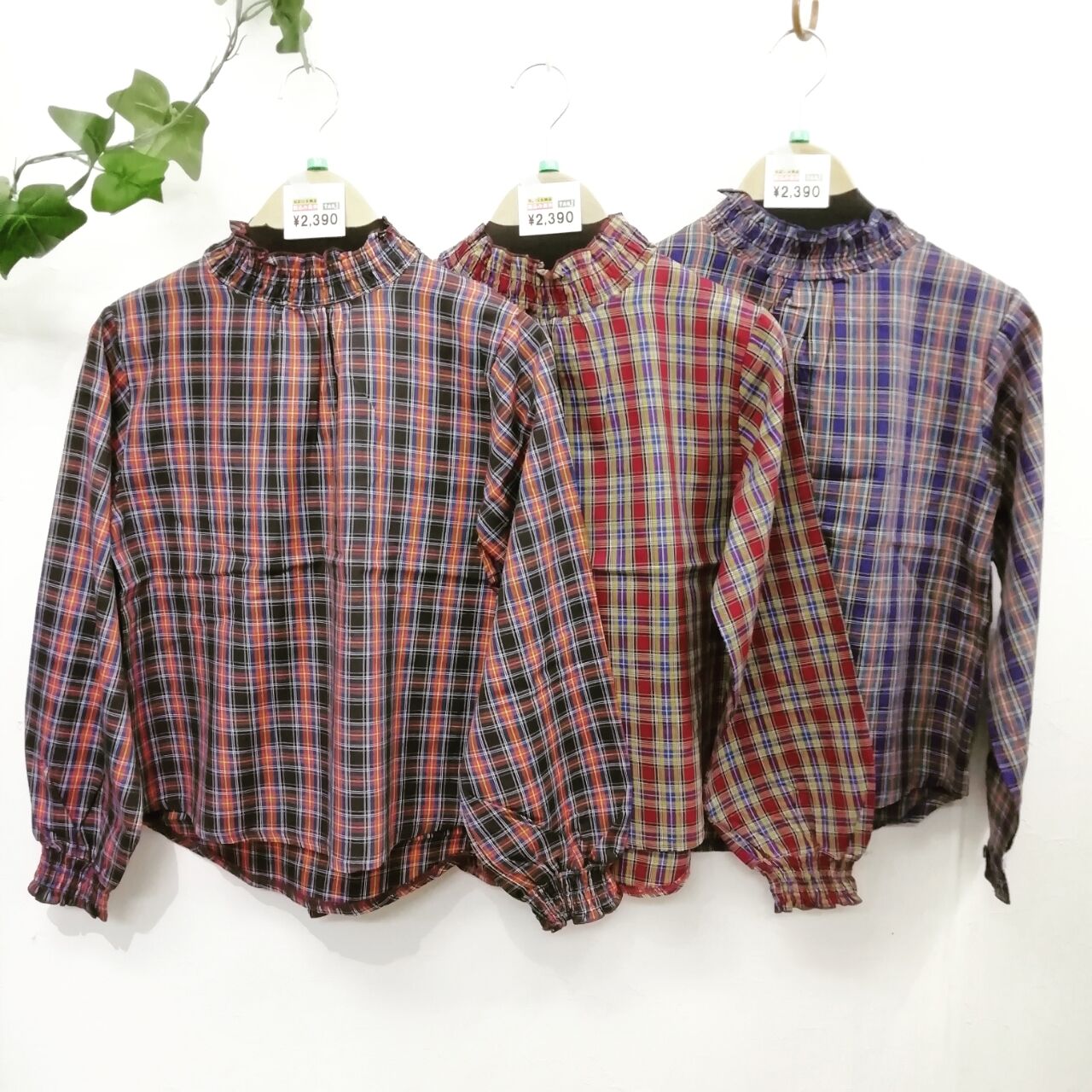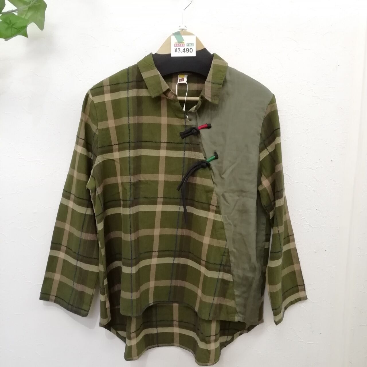 2、チェック&無地切り替えシャツ