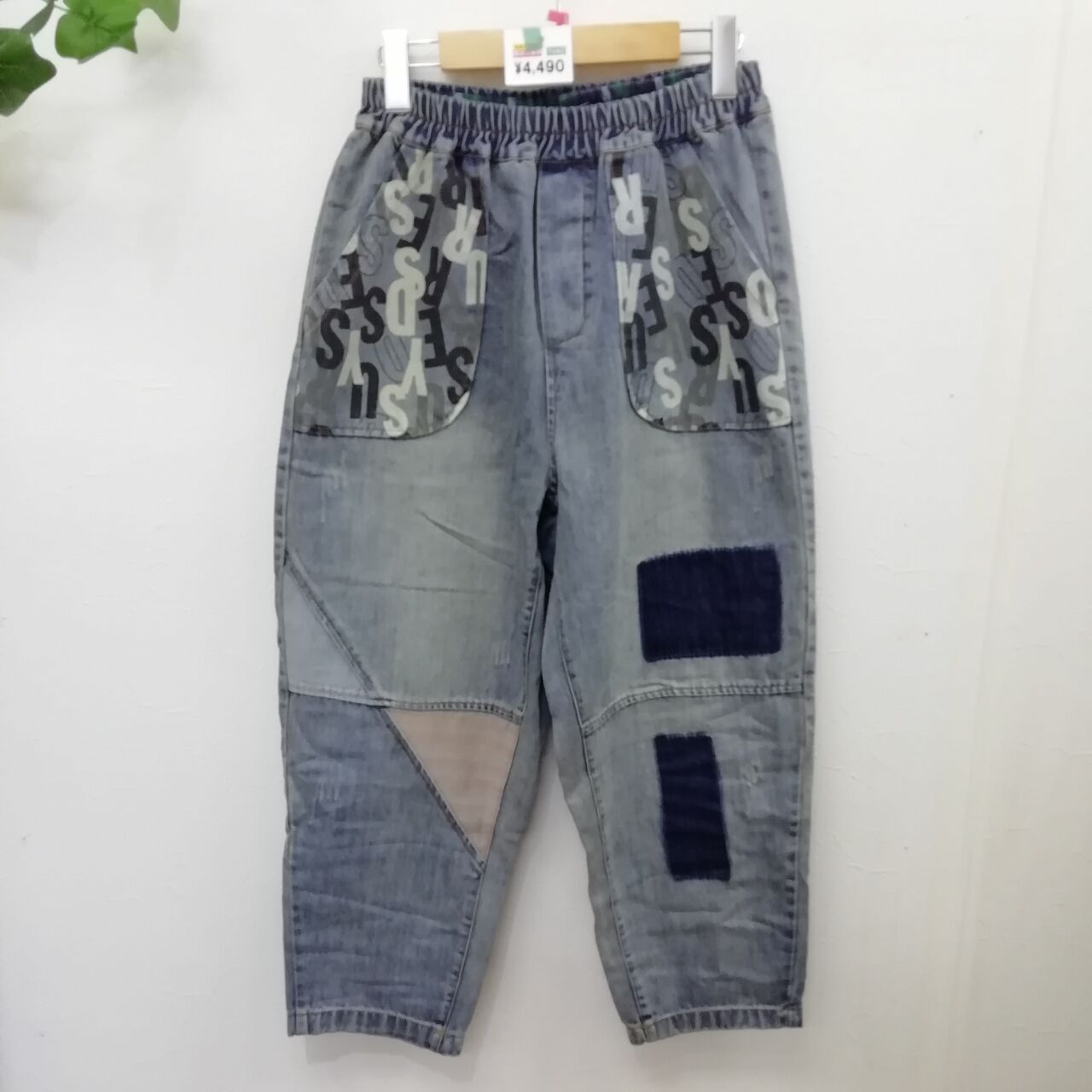 5、英字柄ポケット付きジーンズ