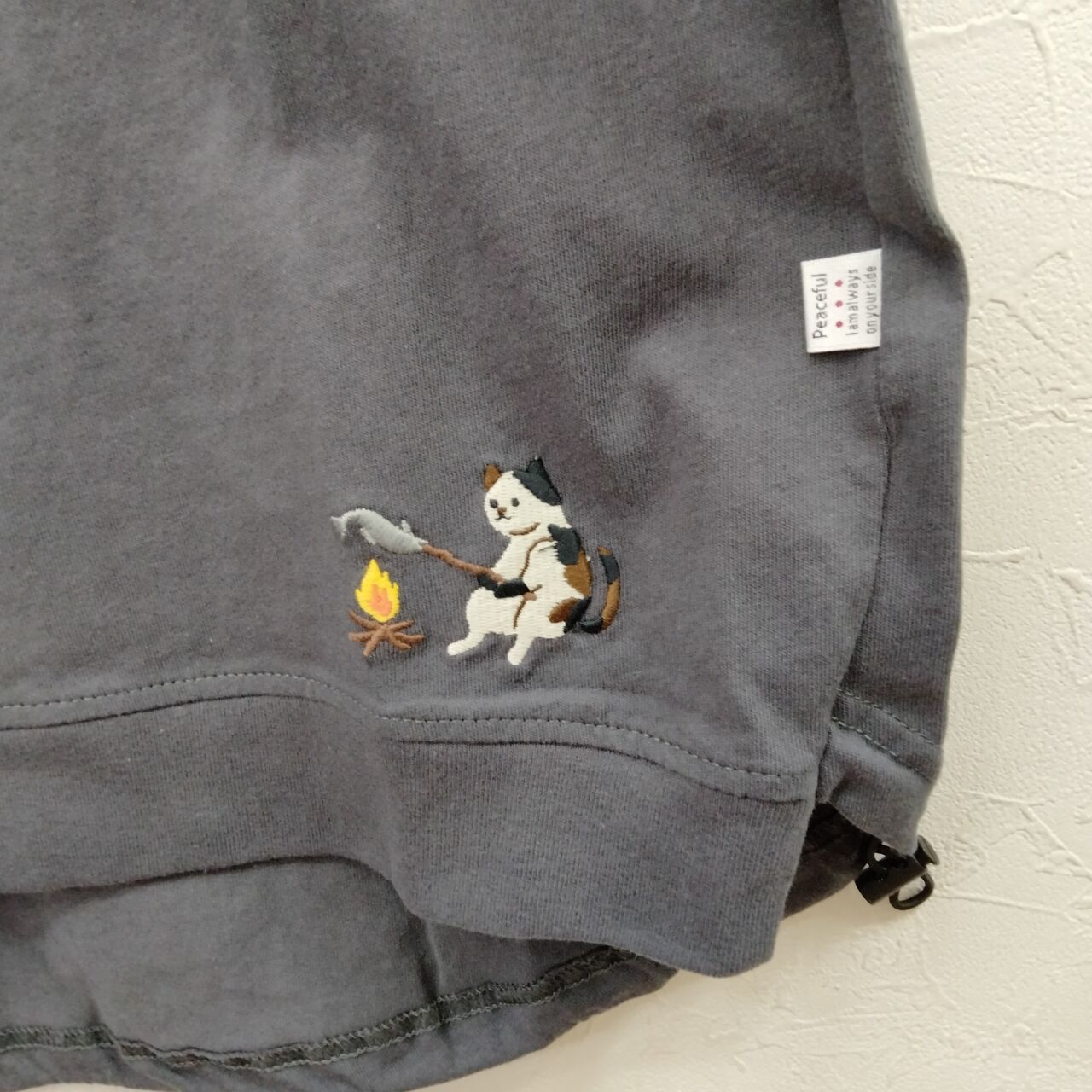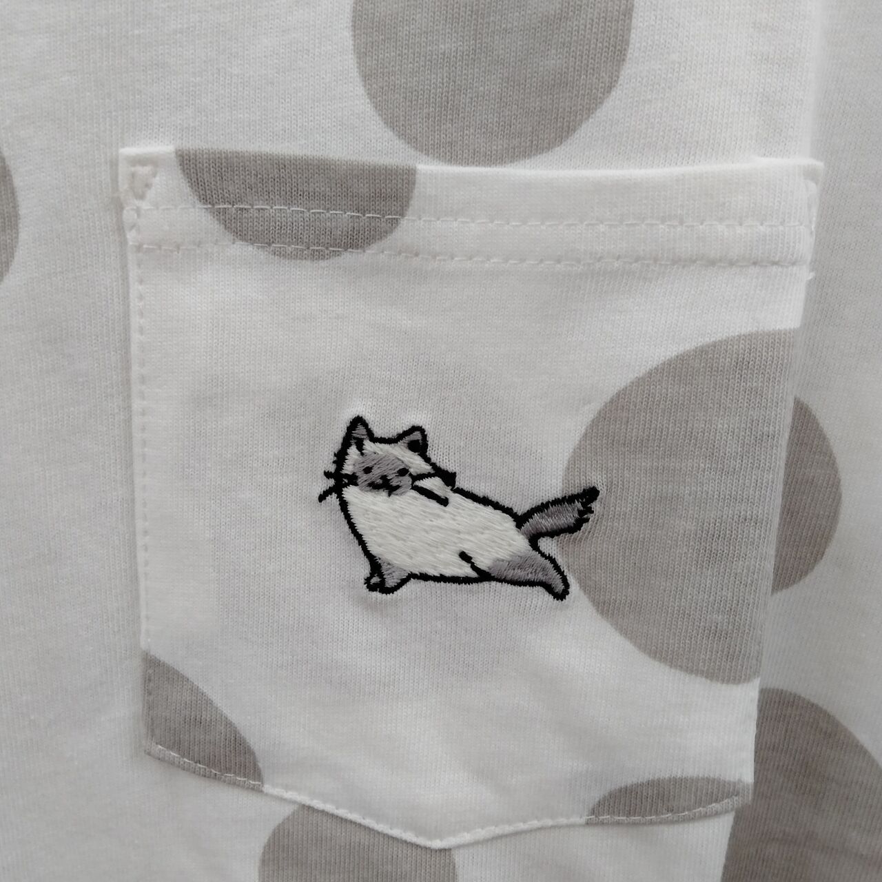 ポケットにネコちゃん刺しゅう。