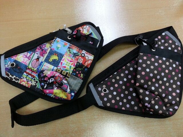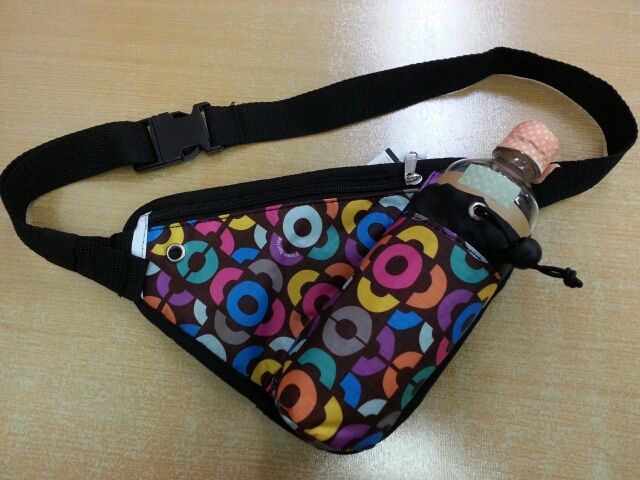 ペットボトルとスマホなどが入れられるウエストポーチです。