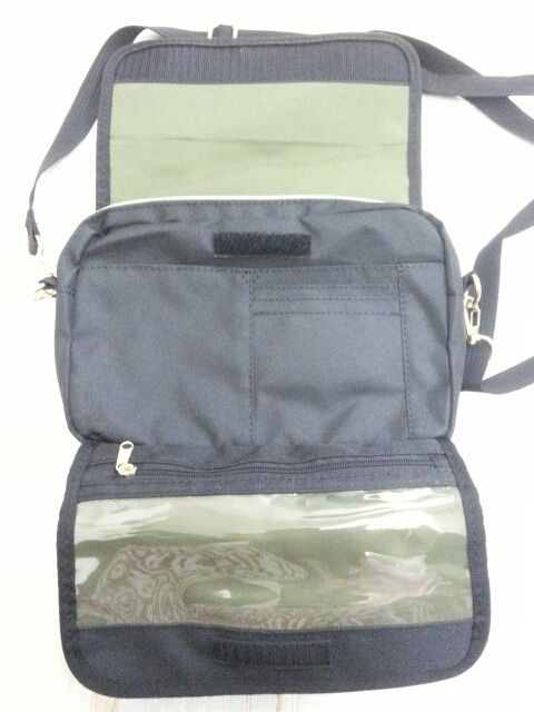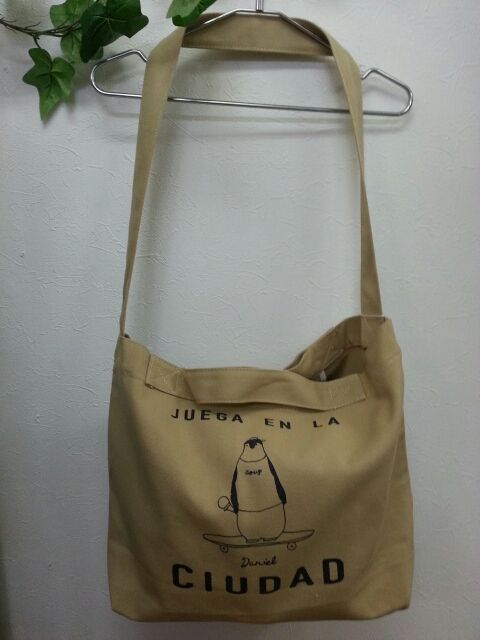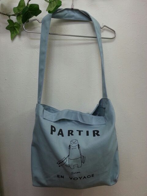 キャンバス地の斜め掛けバッグ。
